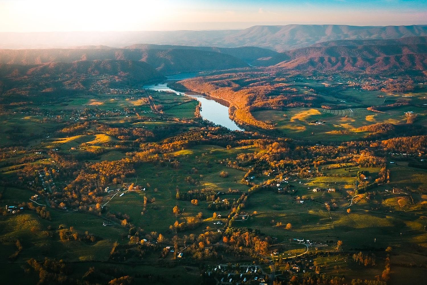 Taken from the cockpit of a Cessna 172, the New River cuts beautifully across the mountains and fields of Southwest VA.